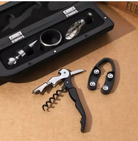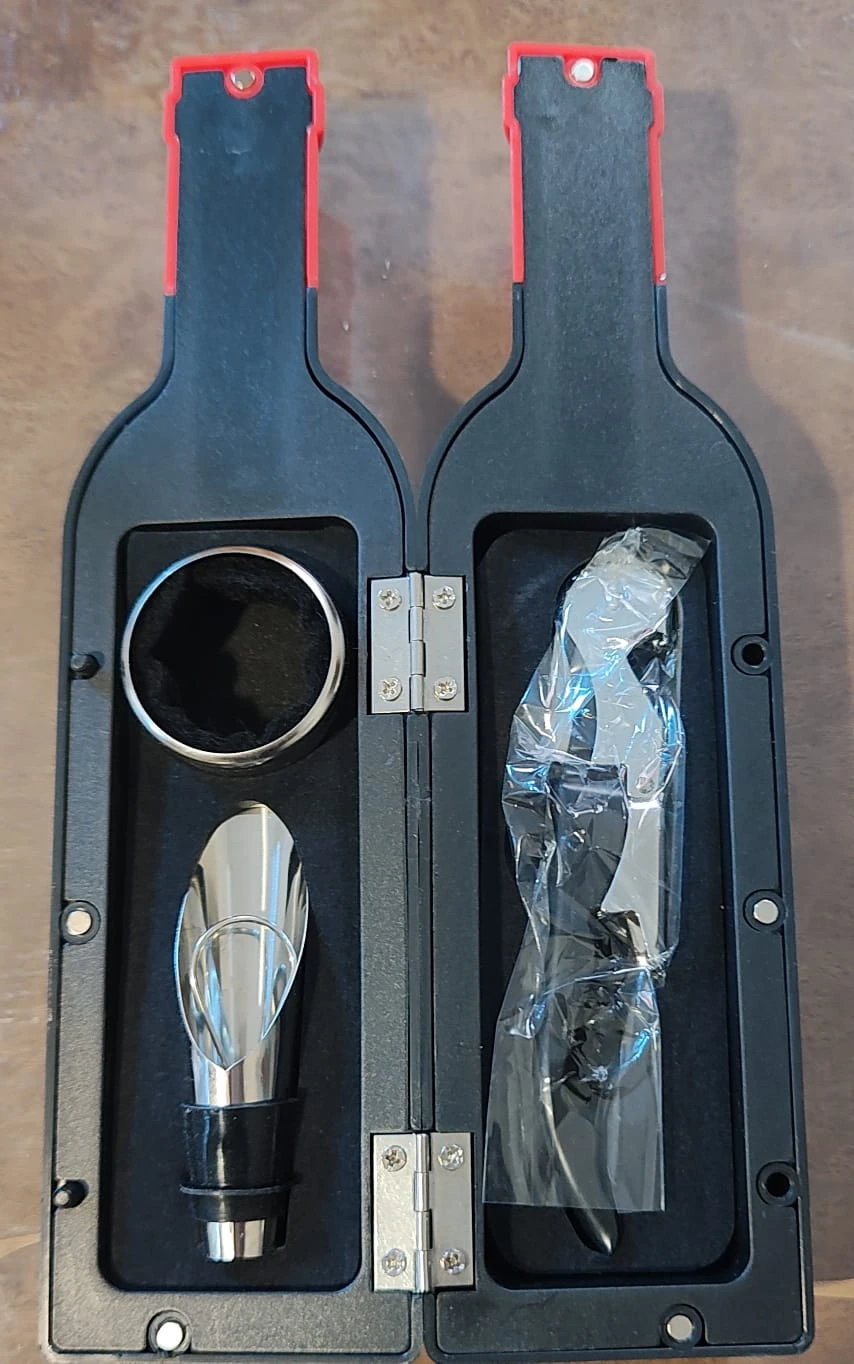 Botella que incluye destapador , laviador y corona para vinos