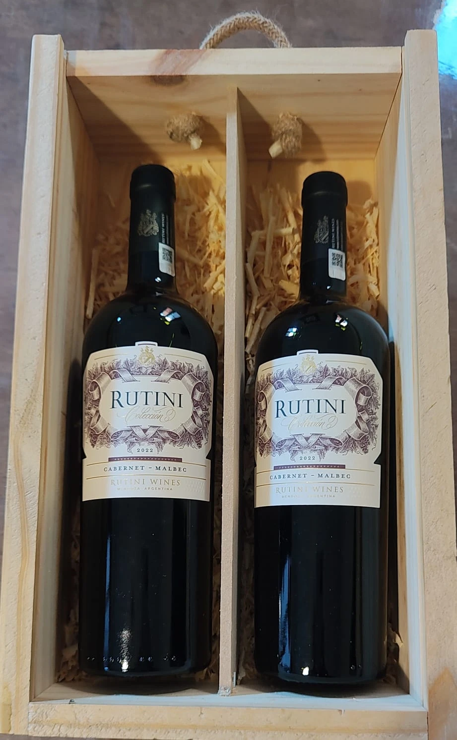 Caja de 2 vinos Rutini Cabernet Malbec en Caja de Madera